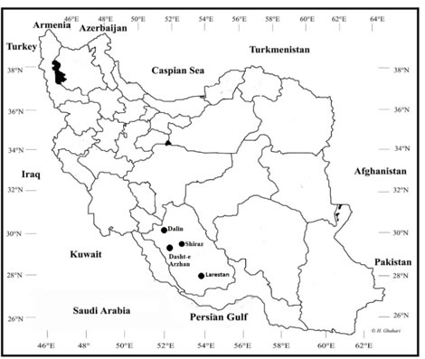 Fig. 1. Map of Iran and location of the sampling localities in Iran.