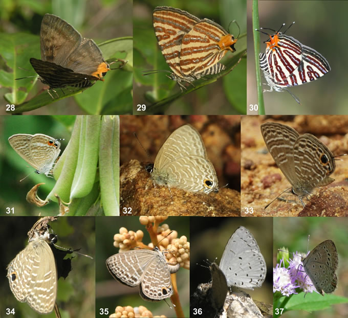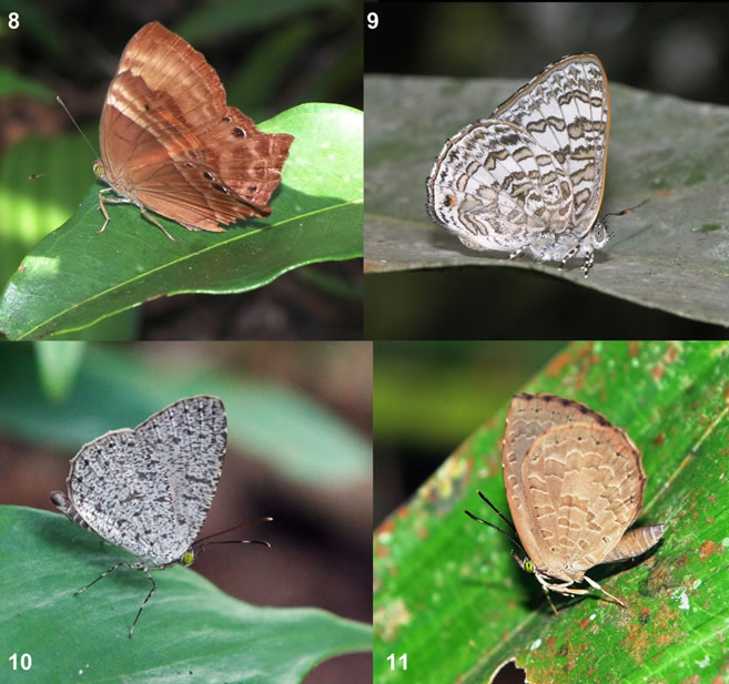 No doubt, the knowledge of the Cambodian butterflies will gain with time, but the rate of deforestation of the country is frighteningly high, so that the current speed of extermination of butterfly habitat may have already exceeded the speed of their study. Meanwhile the knowledge of this group is very important just for the purposes of nature conservation for the two above given reasons: the human love to these beautiful creatures and their conspicuous manifestation of the habitat quality. In this respect, any new and even preliminary knowledge of butterfly species composition and distribution are welcome. Photographical data can be considered as such. Butterflies are very popular object of wildlife photography. With their rich, elaborate and as a rule species specific wing pattern, butterflies are among creatures most likely identifiable by photographs. Nevertheless, many of their groups, especially in Hesperiidae, have very similar or identical wing patterns and are identifiable only by male genitalia, that makes them the least investigated and hence most interesting. Among Cambodian butterflies, most representatives of quite a number of speciose genera, e.g. Melanitis, Mycalesis, Ypthima, Potanthus, cannot be identified by the wing pattern while identification (especially by only one wing side) of many species in the genera Miletus Hübner, [1819], Allotinus C. & R. Felder, [1865], Arhopala Boisduval, 1832, Jamides Hübner, [1819], Nacaduba Moore, [1881], Prosotas Druce, 1891, some Euploea Fabricius, 1807 etc. and the whole family Hesperiidae is problematic. Although all photographic records should be considered as preliminary, to be once proved by voucher specimens, they worth publishing with a relevant degree of caution, as a certain step of revealing so insufficiently known butterfly fauna of Cambodia. Some photographs of interesting insects could even inspire special directed studies.